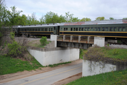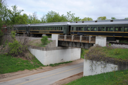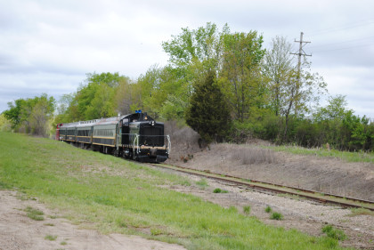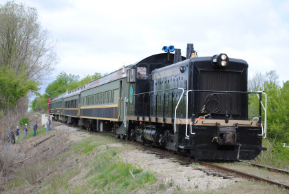 Our group boarding the train. From here we went east to our next photo runby location and we all detrained. Here one could get two shots during this double runby. We all went to the same spot for the first one.