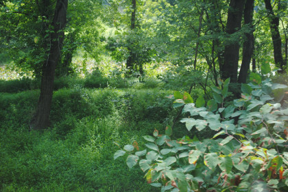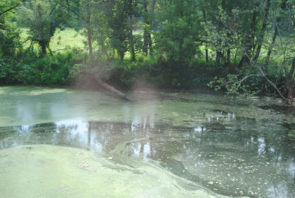 A green pond along our route with the grade of the former Reading Railroad on the other side.