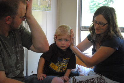 This little one did not like the train horn at all.