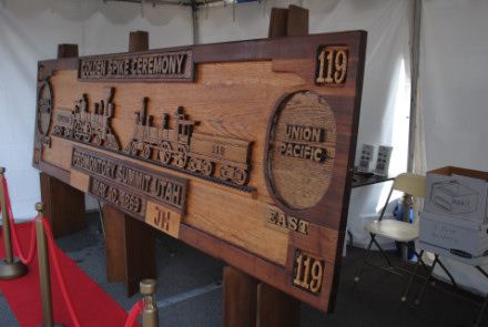 Jackie Hadnot's latest wood carving was on display at the American Passenger Rail Heritage booth. Jackie was on "California Gold" and was interviewed by Huell Howser on the California's Gold Television. His work is also in the Silver Rails Gallery in La Plata. This work will be displayed next Saturday at National Train Day in Los Angeles.
