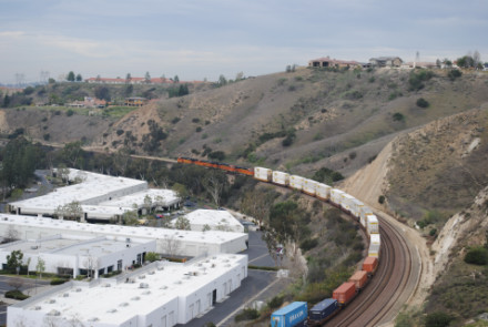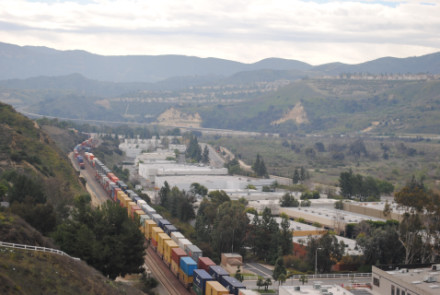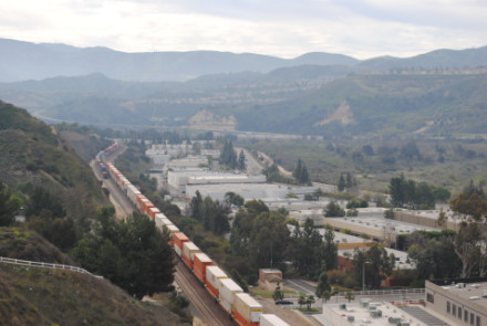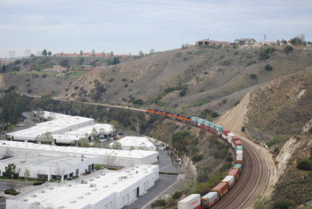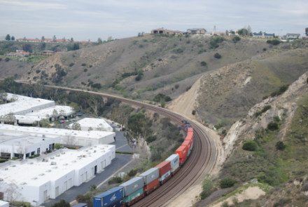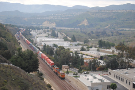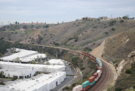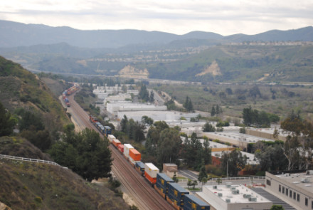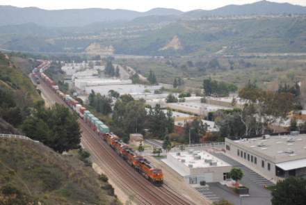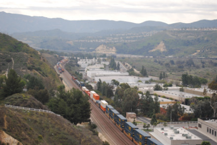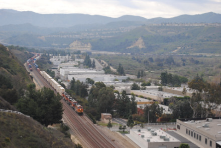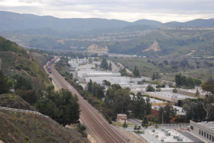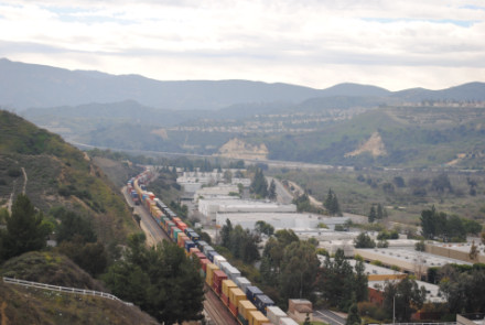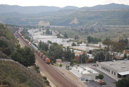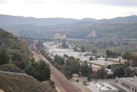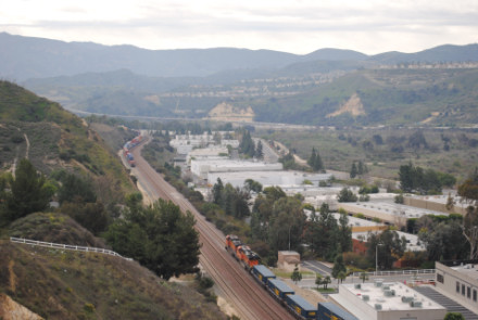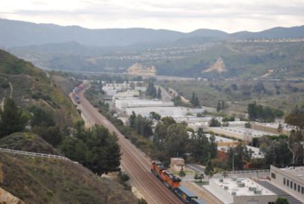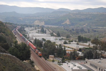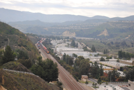 I needed a few more pictures to fill out my Orange County Railway Historicial Society program for tomorrow night, so went out to the Horseshoe Bend of Santa Ana Canyon this first Sunday of March for some pictures. I hiked up the bridal trail to my favorite train-watching viewpoint in Orange County.