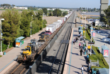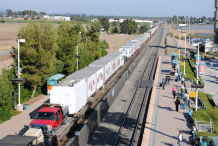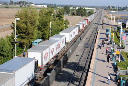 I decided after my trip to San Mateo Point this morning, that I should try to cover the Circus Train's move to San Diego. This train is the Red Unit with Union Pacific 4436, 4569 and 4415 for power with 59 cars: 4 stocks, 34 coaches, 2 COFC and 19 flats for a total of 252 axles less power.