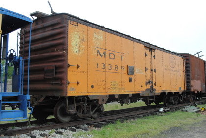 Merchants Dispatch Transportation refrigerator car 13385 built by Pacific Car and Foundry in 1956. Later leased to New York Central, it was donated to our museum by Merchants Dispatch Transportation and arrived on April 8, 1995.