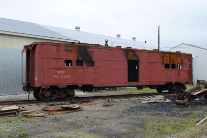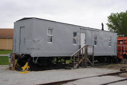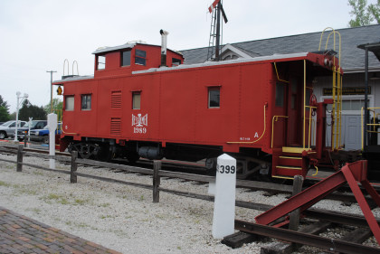 Hoosier Valley Railroad Museum caboose 9914, ex. Illinois Central 9914 built by the railroad in 1939. It later became Chicago & Indiana 100 and a caboose for the Tippecanoe Railroad (un-numbered). The caboose was burned out on the inside and was later renovated by the museum as a display car, becoming HVRM 99.