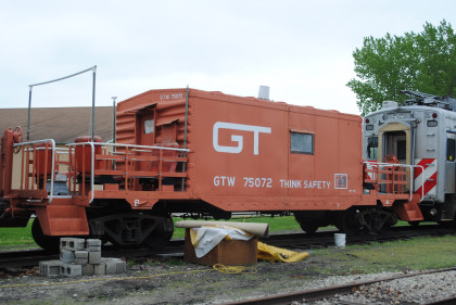 Grand Trunk Western transfer caboose 75072 built by the railroad from a 40 foot box car. It was donated to the museum in 2006 and repainted into its original GTW orange paint scheme. The museum now uses this caboose as our "craft caboose" where some of our volunteers sell hand-made craft items.