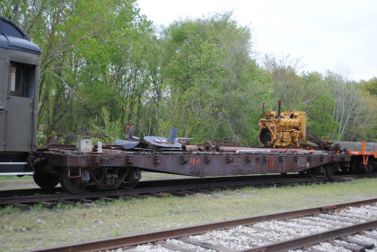 Hoosier Valley Flat Car X1138, ex. Northern Indiana Commuter Transit District X1138, nee Chicago, South Shore and South Bend X1138. Plans are to use the flat car as the boom car for our Purdue crane.