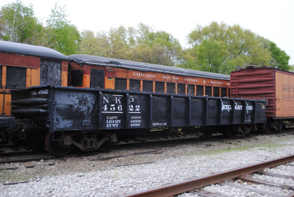 Nickel Plate Road open-top gondola 45622, nee Wheeling and Lake Erie 45622 built by Ralston Car in 1946. The gondola became the property of the Nickel Plate Road after the leasing of the W&LE by the NKP. After the NKP merger with the Norfolk & Western, the gondola became property of N&W and was rebuilt in May 1965. This car was donated to our museum by Norfolk Southern in February 1994.