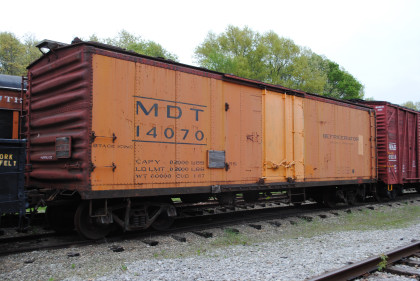 Merchants Dispatch Transportation refrigerator car 14070 built by Pacific Car and Foundry in 1958. Later leased to New York Central, it was donated to our museum by Merchants Dispatch Transportation and arrived on April 8, 1995.