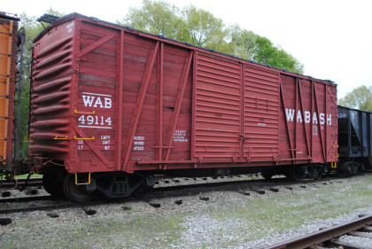 Wabash outside-braced box car 49114 built by the railroad in 1929 and was assigned to the Studebaker plant in South Bend, Indiana and used to haul new automobiles. It was delivered to our museum on July 30, 1993.