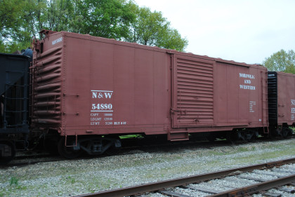 Norfolk and Western box car 54880 built by Ralston Car Company in 1937. It was converted to maintenanace-of-way service in 1972 then donated to our museum by Norfolk Southern in September 1989.