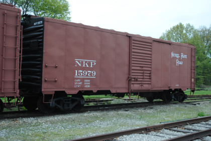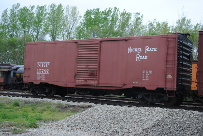 Nickel Plate Road box car 15979 built by General American Car in 1937. After the NKP merger with Norfolk & Western, the car was re-numbered N&W 556001 and coverted to maintenance-of-way service. It was donated to our museum by Norfolk Southern in August 1989.