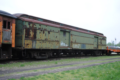 Chicago and Eastern Illinois troop kitchen car A-1054, ex. Missouri Pacific, exx. Chicago and Eastern Illiniois, nee United States Army K-325 built by American Car & Foundry in the 1940's. These cars served as rolling kitchens for the soldiers that were heading off to the war. This car was donated to our museum in 1996 by Bob and Barbara Harms of Lakeside Railway Services.