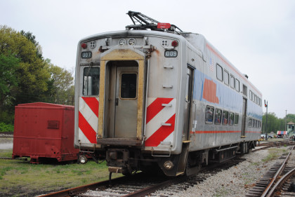 Metra Electric Highliner coach 1502, ex. Metra 1502 1987-2008, exx. Illinois Central Gulf 1502 1972-1987, nee Illinois Central 1502 1971-1972 built by St. Louis Car Company in 1971. It was donated in 2008.