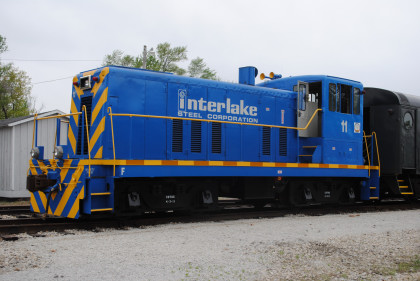 Our Excursion TrainInterlake Steel Corporation 95 ton switcher 11, nee Acme Steel 11 built by General Electric in 1952. The locomotive was donated to our museum by Acme Steel and arrived on January 13, 1995. This locomotive has gone through an extensive rebuild process and has been restored to its Interlake Steel Corporation lettering.