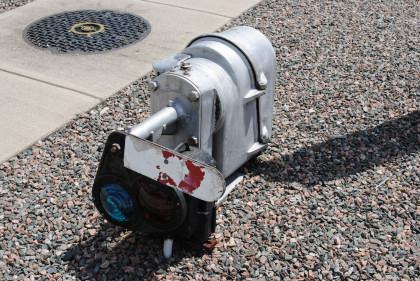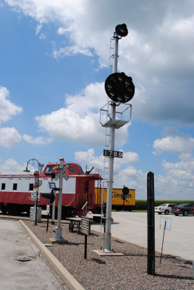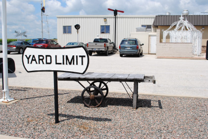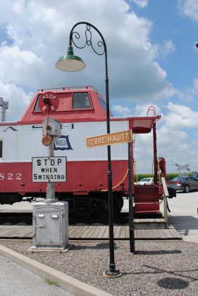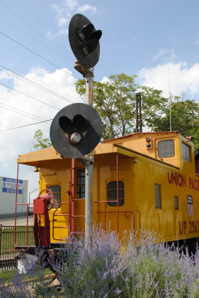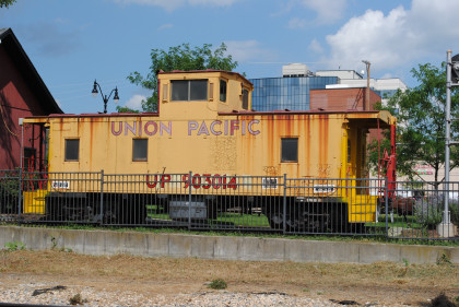 Union Pacific caboose 25673, built as 903014 by International Car in 1967. It was converted to Roadway service in 1994 then stored at Laramie, Wyoming, moved to Cheyenne and sold in 2004 to the Kankakee Railroad Museum.