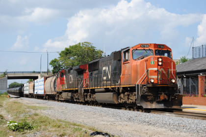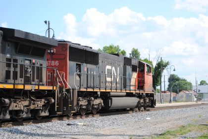 Canadian National 5786 South came through Kankakee. Down the tracks was a local getting ready to go back to work.