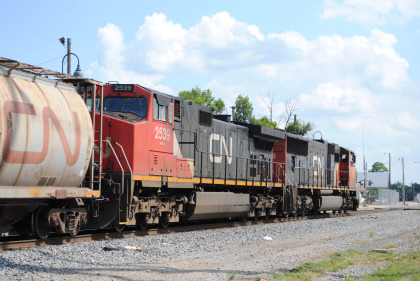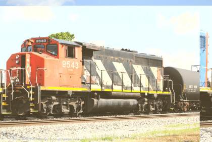 Canadian National GP40-2LW 9543 built by Electro-Motive Division in 1975. From here Dave and I tried to find the local crew, had no luck but stumbled onto another train because we did this.