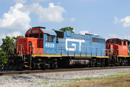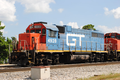 Grand Trunk Western GP38 4928, ex. Grand Trunk Western 5728 exx. Helm Leasing 2018, exx. Missouri Pacific 2018, nee Missouri Pacific 867 built by Electro-Motive Division in 1972.