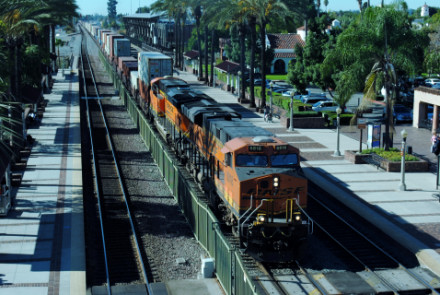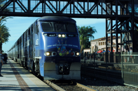 Pacific Surfliner 573 heads north towards Los Angeles through Orange.
