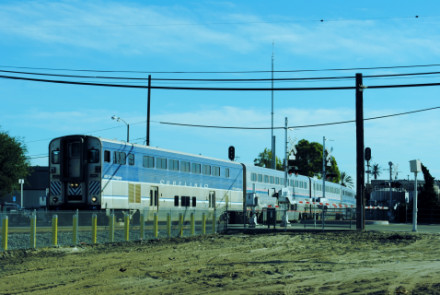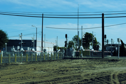 12/02/2013 After working another day at my new job at Heninger Elementary School, I went home, had lunch and after checking the Internet, I drove north to Orange and parked in the north end of the Metrolink station parking lot. I walked over to the West Palm Avenue grade crossing and heard a horn to the south of a train coming my way.