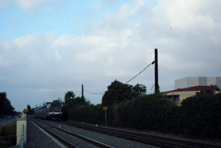 Pacific Surfliner 777 heads towards the Santa Ana station. I would return here tomorrow to catch Amtrak 42 on Pacific Surfliner 774.