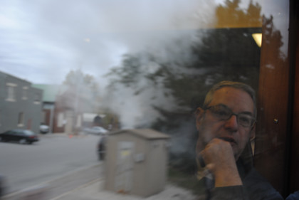 Bob and Chris Parker aboard "Tennessee", the second car behind Nickel Plate 765.