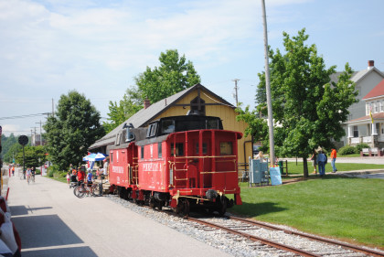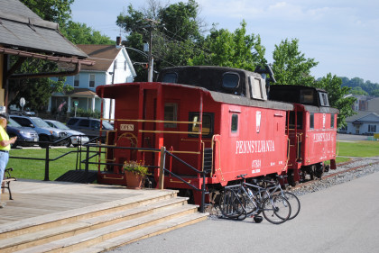 The cabooses signal our arrival back in New Freedom.