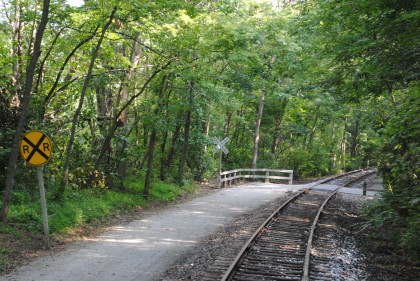 The trail switched sides of the tracks with crossbucks.