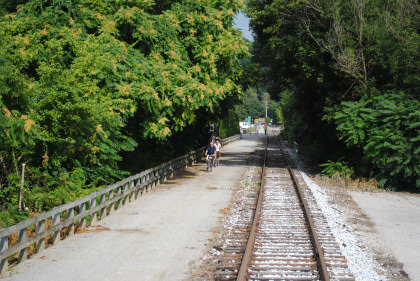 Bicycles are required to stop at all roads on this trail.