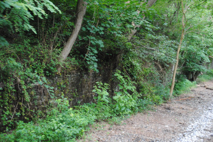 The stone wall was for the old coaling tail loading track to get cars to the top where they could load five trains at the same time at this location.