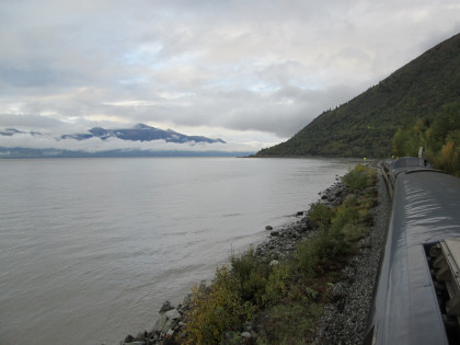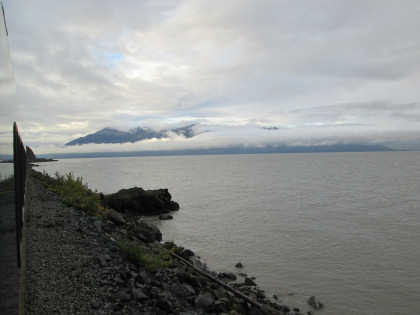 The train running along Turnagain Inlet. I went to the Gold Star car for a few pictures.