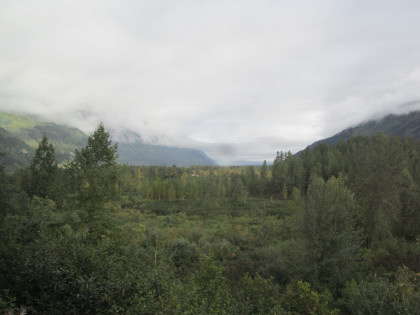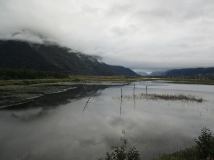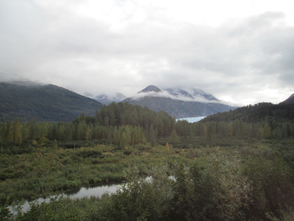 Lower Trail Lake which drains into Kenai Lake. The rain started and stopped before the sun showed for the first time today.