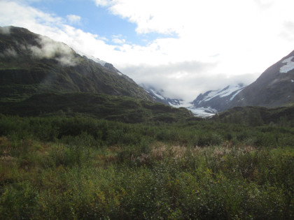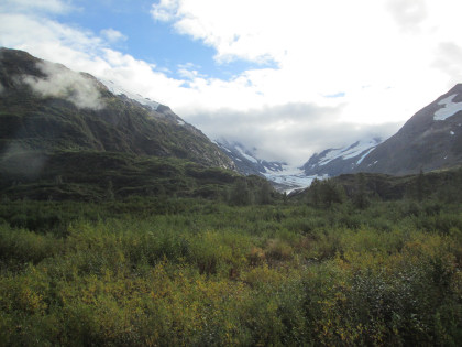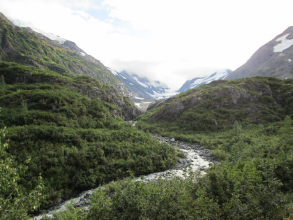 Views of the Bartlett Glacier which was named in 1907 for Frank Bartlett, Alaska Central Railroad civil engineer. The glacier is visible just 800 feet from the track. Deadman's Glacier rises above.