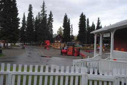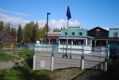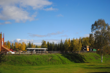 Chena Hotel - This building has an interesting history dating to some of the earliest days of Fairbanks. The Palace Hotel originally stood near the corner of Cushman and Fourth Avenue. The name of the hotel was changed to the "Palace Hotel and Bathhouse" when bathing facilities were added and opened to serve local miners. The hotel was apparently never considered to be the best in town as it stood at the edge of the "red-light district", a row of small cabins on Fourth Avenue between Cushman and Barnette in which prostitution was tolerated behind a high protective fence. In 1906, fire destroyed most of the downtown buildings but the hotel survived in nearly its original condition. In 1957, the hotel was renamed the Chena Hotel. With changes downtown, the building was moved to the park in 1967 and restored.