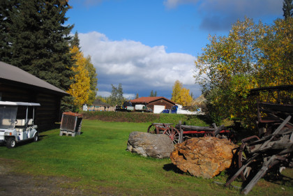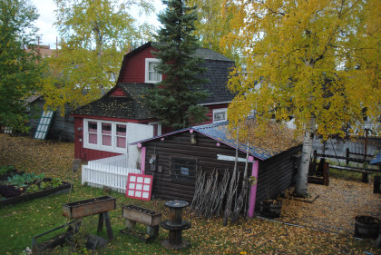 Doc Stearns' Cabin was built in the 1920s by the first veterinarian in Fairbanks on 6th Avenue. Doc Stearns was an avid moviegoer and also operated a small farm.