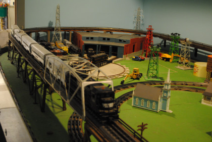The train runs above the main room here.