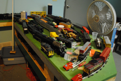 The Spring Lake interurban station was dismantled for moving and will be rebuilt. Mike then took me inside to see their model railroad.