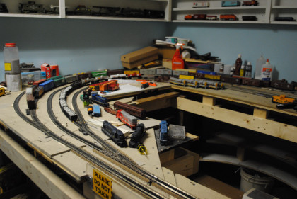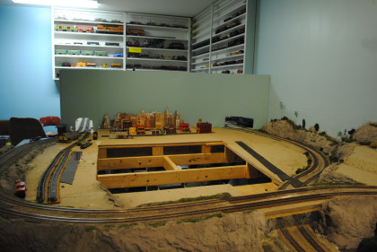 This model railroad features Lionel, HO and N scale layouts.