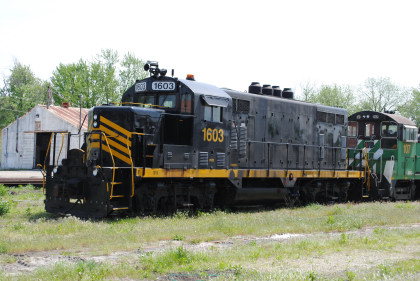 Maumee and Western Railroad GP16 1603, ex. Pioneer Rail Equipment 1603, exx. CSX 1742, exxx. Seaboard System 4642, nee Seaboard Air Line 1915 built by Electro-Motive Division in 1955. The Michigan Southern Railroad (doing business as Napoleon, Defiance & Western Railroad, formerly Maumee & Western) operates between Woodburn, Indiana and Napoleon, Ohio and comprises 58 miles of track. The railroad originally extended to Toledo; portions have been converted to a rail trail. Pioneer Rail Equipment bought Maumee and Western in 2012.