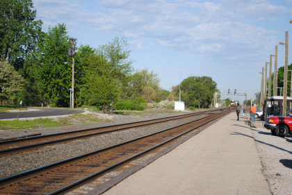 The park next to the depot includes the Baltimore and Ohio gate tower which used to be on the west side of Randolph Street between main tracks 1 and 2, eastbound and westbound. Twenty-four hours a day, the gate keeper raised and lowered the gates across Randolph as trains were made up, as they moved back and forth in the yards and as they passed through town.