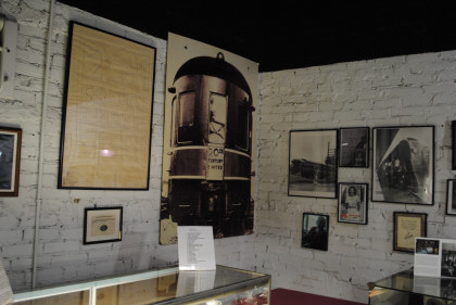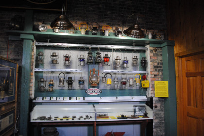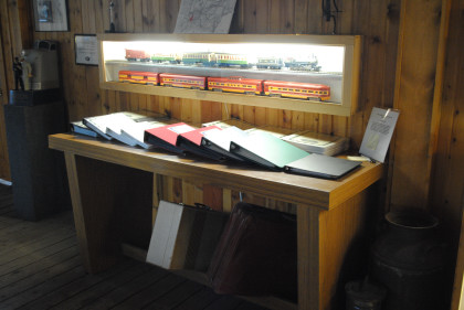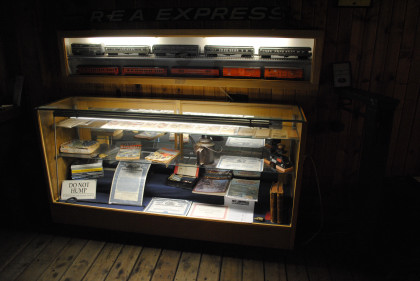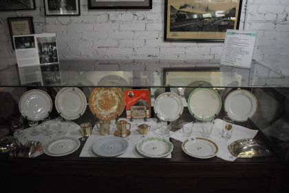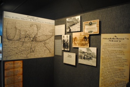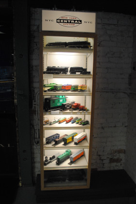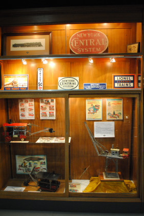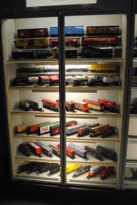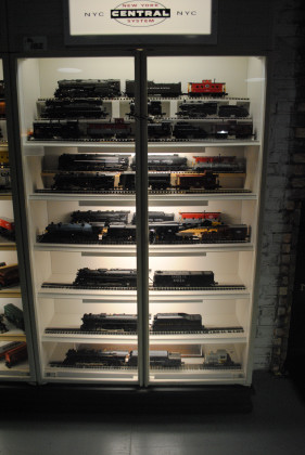 Memorabilia and artifacts. The lit case in the first photograph contain the Stanley and Danielle Bell model train collection, donated to the National New York Central Museum and the City of Elkhart in June 2010.