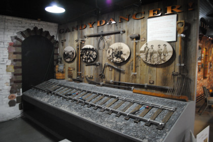 A tribute to the gandy dancer, a slang term used for early railroad workers in the United States and Canada, more formally referred to as section hands, who laid and maintained railroad tracks in the years before the work was done by machines. The British equivalents of the term gandy dancer are navvy (from navigator), originally builders of canals, or inland navigations, for builders of railway lines, and platelayer for workers employed to inspect and maintain the track. In the Southwestern United States and Mexico, Mexican and Mexican-American track workers were colloquially traqueros.