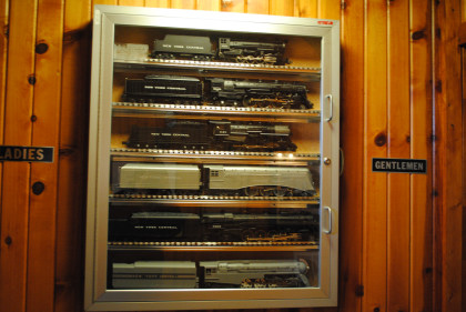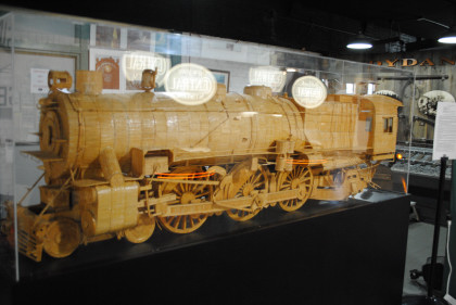 This eight inch long, one-sixth scale model of Pennsylvania Railroad K4 417 was built by Terry Woodling of Warsaw, Indiana and contains 40 lbs. of glue and 421,250 toothpicks! Completed in 1991, it took seven years to build and its wheels, side rods, brakes and windows all move.