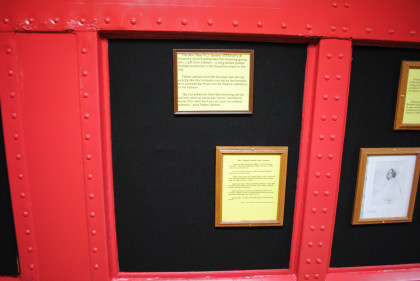 A display commemorating the 1926 Cardinal's Train. "The Peace of Christ in the Reign of Christ" was the theme of the 28th International Eucharistic Congress, and for the first time ever the Congress was being held in the United States. Coming from Italy, the Pope's personal representative would travel to Chicago by rail from the port in New York City. Chicago Archbishop George William Mundelein was about to put his town, and the United States, on the map -- at least with the Roman Catholic Church. It was a tremendous coup for the Chicago Archdiocese to be chosen to host the event, and over one million people attended from June 20-24, 1926.