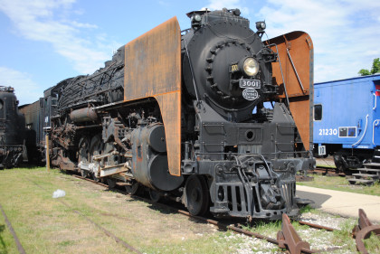 New York Central 4-8-2 3001, built by American Locomotive Company in 1940 and delivered to the New York Central for its first assignment in Elkhart that October. 3001 hauled both freight and passenger trains, including the 20th Century Limited. In 1957, it was sold to the City of Dallas to replace Texas & Pacific 638 at the Texas State Fairgrounds. In 1984, it was traded to the National New York Central Railroad Museum in exchange for former Pennsylvania Railroad GG1 4903.