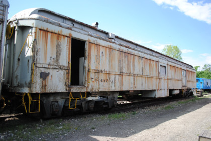 Conrail maintenance-of-way car 45710, ex. Pennsylvania Railroad RPO-baggage car 710, nee New York Central 9036). When owned by Conrail, it served as part of the Selkirk, New York wreck train and donated by Conrail in 1997.