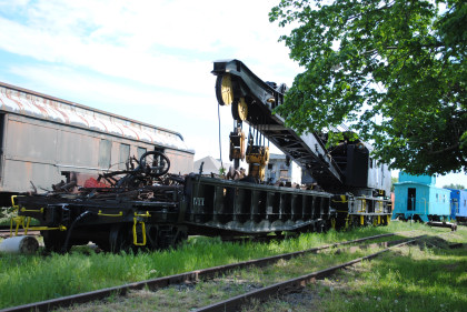 New York Central idler car 504472 for crane X-13 built by Industrial Brownhoist in 1949. It was the first of four oil fired, self propelled steam cranes built by the company, and was based in Selkirk, New York then donated by Conrail in 1997.