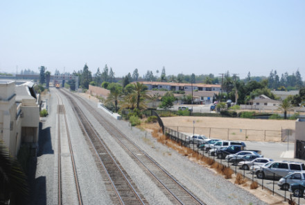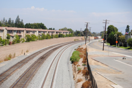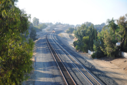Pacific Surfliner 572 for San Diego was our last train here. We headed back to Interstate 5, stopping at a 7/11 store in Irvine for snacks before we took Interstate 5 to California Highway 57, where we exited at Orangethrope Avenue. We took that east then turned left on Melrose Street, right on Crowther Avenue to our next new photo location, the pedestrian bridge over the BNSF mainline in Placentia.
