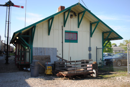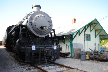 Norfolk and Western 4-6-2 578 built by Alco-Richmond in 1910 and donated to the Central Ohio Railfan Association in 1959. It sits in front of the replica depot built in 1968. They also own another steam engine, Marble Quarry 0-4-0 1 built by Vulcan, but it is off the museum site at the moment.