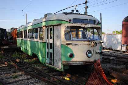 Pittsburgh PCC car 1772 built by St. Louis Car Company in 1949. It left the museum in 2015 and was acquired by the Downtown Trinidad Development Group in Trinidad, Colorado that year.